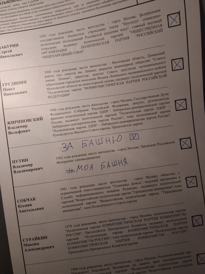 И вдруг количество испорченных бюллетений превысит количество бюллетений главного назначенного кандидата. ГОЛОСОВАНИЕ ПОДКОНТРОЛЬНЫХ БЮДЖЕТНИКОВ. . Заставляли ставить крестик напротив всегда избираемого главного кандидата и фотографировать такой отмеченный бюллетень. Чаще, после котрольной отметки и фотографирования. несогласный избиратель ставил крестики и по другим кандидатам, делая бюллетень испорченным. ----------------------------------------
